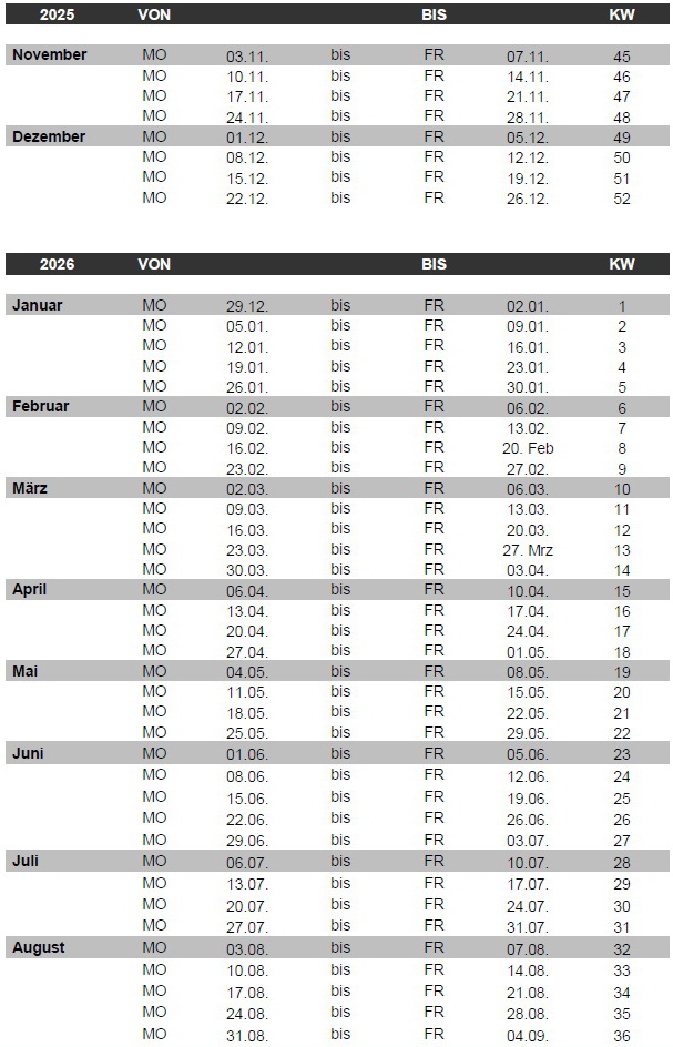 Kalenderwochen 2025 / 2026